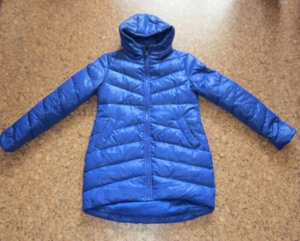 1. Демисезонный пуховик Кира Пластинина, синего цвета с капюшоном, на весну-осень. Размер 44-46. Цена 1000 р.
