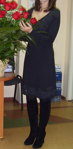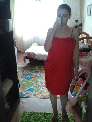 Новое платье. Размер L. Как видно - оно мне очень велико. Подарили мне его после родов. Так ни разу и не "выгуляла". Надела только для фото.
