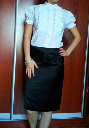 Нарядное атласное платье с бантом, сбоку на замке, внизу по бокам небольшие разрезы. Размер S. Садится по фигуре в груди, талии и бедрах, от бедер вниз - прямое. В жизни очень красивое, надето два раза на мероприятия. Цена 1200р.