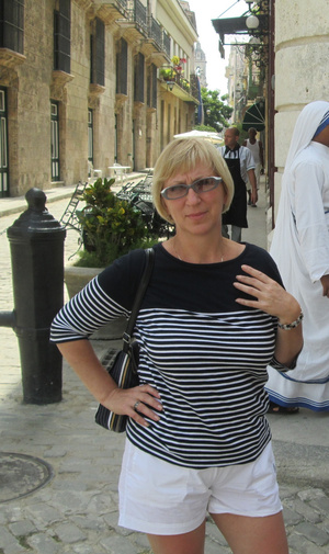 Мне жаль, что у меня нет ее более поздних фотографий - не нашла, потому что сейчас ей 59, но разницы с этой фотографией я не вижу практически никакой, только кожа стала более пористой в Т зоне.
