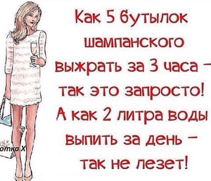 Я вот тоже никак не могу воды много пить, просто стараюсь меньше кофеина употреблять, без утренней чашки кофе не могу, а в остальное время почти всегда пью горячую воду с лимоном-имбирем и всякие мятные-ромашковые-фруктовые чаи.