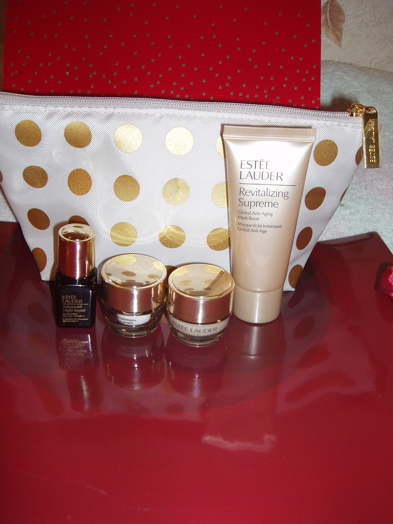 Помимо сертификатов - получила еще подарки от консультантов: традиционно порадовали консультанты Эсте Лаудер косметичкой с щедрым наполнением, подарочками и пробничками от Pola и Ланком.