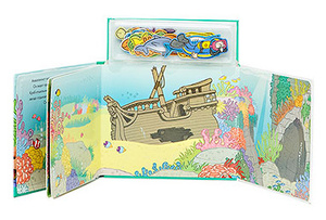 конечно, они для детей постарше, чтобы уже осознанно какие-то истории создавать, и гнет, мнет он магниты эти, картинки скоро потрескаются. картинки не мелкие, см 5-7, съесть не должен, но следить, конечно, нужно.на холодильник тоже магнитятся. буду обязательно искать еще подобные, в инете их много (на ферме, динозавры, цвета, формы, счет и т д), у меня пока одна "на дне моря". недостаток: когда страницы листаешь, магниты отваливаются