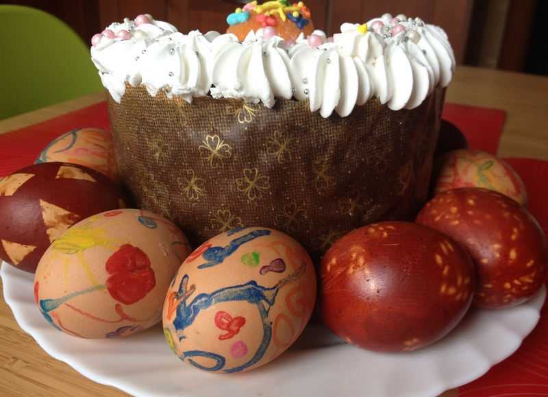 А мы красим в луковой шелухе. Пост не соблюдаем, поэтому отмечаем скромно, красим немного яиц на завтрак, кулич покупной. Утром все вместе завтракаем (у нас это большая редкость).