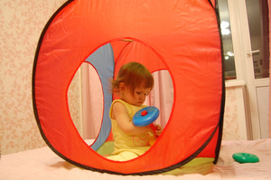 У меня вопрос по поводу игрух: что нжно 1,5 годовалому ребенку? Моя только мячик и коляску катает, пазлы не признает. Книжки любит "читать", начала кубики собирать по картинкам, но не получается пока...Ника любит играть в палатке. Игрушки и книжки приобретают новую прелесть, если сидишь в палатке