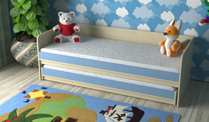 С выдвижной тоже проблем много, с конструкцией. Тем более дети разнополые практически рядом спать будут.