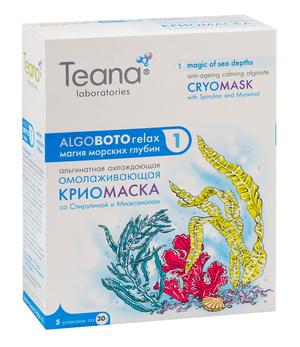3. Криомаска Teana laboratories омолаживающая альгинатная охлаждающая с экстрактами морских водорослей: спирулиной и миоксоном, новая - запаковано, в коробочка с 5 -ю упаковками по 30 ml, 500p