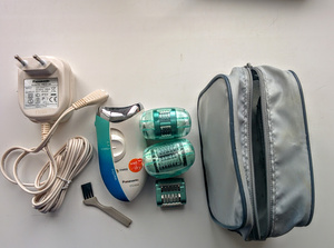2. Эпилятор Panasonic ES2054, б/у, состояние отличное. Аппарат можно использовать в душе, 2 скорости, есть 2 насадки, защитная решетка, чехол и зарядное устройство.