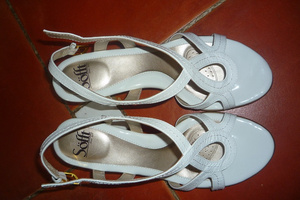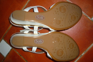 2. Босоножки Обувь-комфорт Sofft , для проблемных ножек, натур лакированная кожа, куплены с очень большой скидкой на америк сайте 6 ПМ , размер 9 -большемерки ( 40-41 ? ) полнота W ( по стельке 27 см, высота танкетки 7,5 см. в самом широком месте поперек стельки 9 см. Цена 2100 ( курс начала 2014 г)