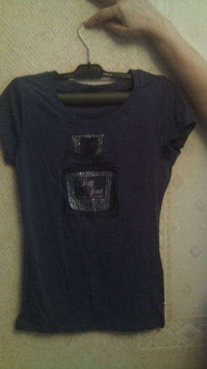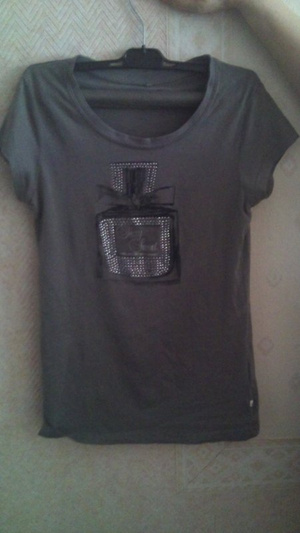 2) Футболка от Блэнд, принт в виде духов, со стразами, на наш 44/46