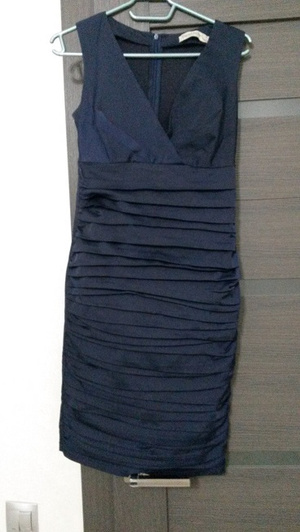 Продам вечернее платье-футляр из темно-синего атласа на худенькую девушку с небольшой грудью. Размер 40, максимум 42. По меркам не более чем 84-62-84, длина 92 см. Сидит по фигуре очень хорошо, по спине вытачки. Одевалось один раз на корпоратив. Цена 300 руб.