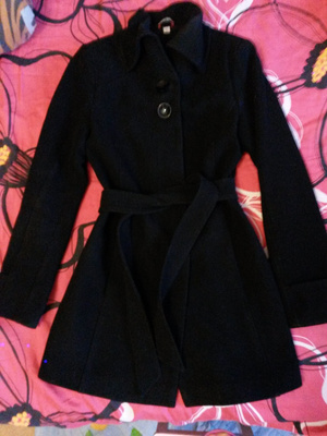 1. Пальто деми, 60% шерсть. Маркировка 44/164, но ближе все таки к 42 размеру. Состояние хорошее, носила бы сама еще не один год, но появление 2 белых кошек в доме сделало для меня невозможным ношение черных вещей. Длина по спинке 76 см, длина рукава 64 см. Цена 400 рублей