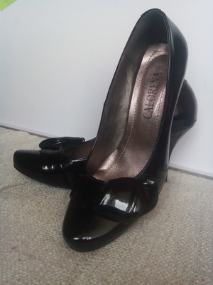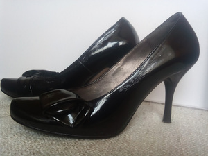 продаются туфли, т. к. в связи с травмой нельзя ходить на каблуках: 1-новые, 38 размер, лакированые, иск. кожа, 700 руб.