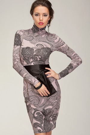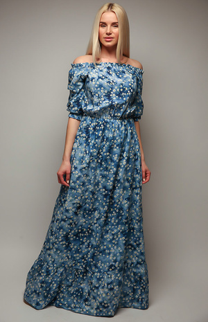 Платье из крепового шифона с дизайнерским принтом "стрекозы". Свободный силуэт с фантазийным кроем, позволяюший завязывать притачной пояс спереди или сзади. Круглый вырез горловины, короткий цельнокроеный рукав на манжете. По среднему шву спинки застёжка на петлю-пуговицу.