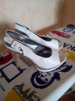 босоножки, цвет-кремовый со вставками, 35 размер, фирма Elisabeth,каблук 8 см, покупала в o"shade , относила 1 летний сезон- 500р
