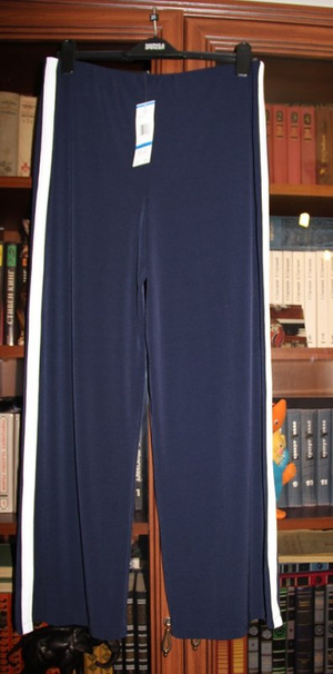 3. Новые Брюки с лампасами( брала к блузке) Jones New York с амер сайта 6 ПМ по цвету в реале тон в тон , размер XL ( 16-18) Российский 50-52 , лучше на ОБ до 116 см . Трикотаж , по боковым швам лапасы , 95 полиэстер, 5 эластан, по талии вшитая резинка. Обошлись 1680 руб ОТ в нераст виде 88 см, длина по боковому 102 см, п/ ширина штанины внизу 32 см . Покрой прямой