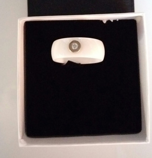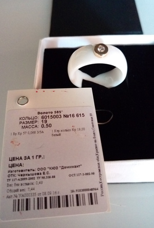 Кольцо из белой керамики, вставка - золото красное 585 +бриллиант Кр 57 0,068 3/5А. Вес вставки - 0,50. Общий вес кольца - 7,44. Ширина шинки - ок 8 мм. Цена - 8000 руб.