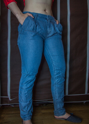 Замеры : Длина в обычном виде по боковому шву 101 см ( на сколько они ниже талии не знаю ) , шаговый 85 см. В функции бриджи по боковому 77 , шаговый 60 см