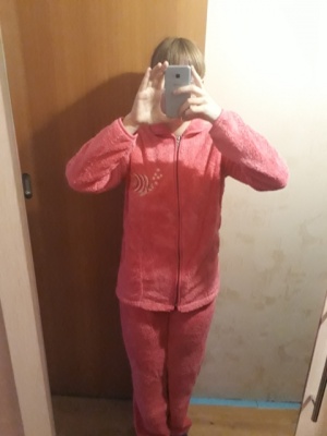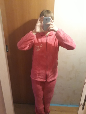 Очень теплый, мягкий, уютный. Цвет насыщенно-розовый. С карманами. Новый. На фото надет на рост 167 см.