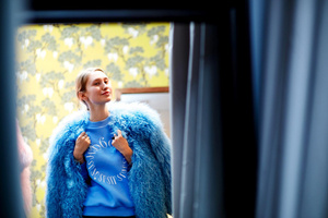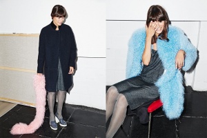 Кардиган имеет свободный фасон, рукав "летучая мышь". Есть меховой элемент, который можно пристегнуть на любую сторону (идет в комплекте с кардиганом). Застежек нет (я приобрела декоративную булавку в магазине фурнитуры. Возможно, отдам). Цена: 3300 руб.