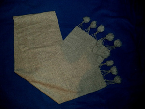 Очень мягкий, нежный, украшен бахромой с пушистыми шариками на концах. Новый, без этикетки. Длина 163 см. без шариков. Состав - 100% акрил.