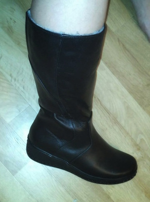 Покупала на совместных закупках маме, но ей оказались великоваты по ступне. На фото одеты на мой 36 размер (у меня обхват голени 35см), поэтому не так хорошо сидят, как сидят на ножке по нужному размеру