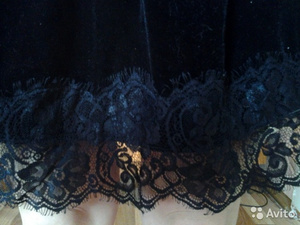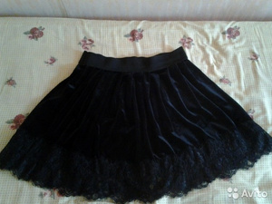 2) бархатную юбку с кружевом. Одета несколько раз. Думаю, что больше подойдет на 44-й размер. Резиночка в нерастянутом виде 72см., но юбка не носится на линии талии - это не карандаш. Она носится чуть ниже. Поэтому, возможно, носить на меньшую талию - тогда нужно немного ушить в резиночке по бокам (это можно сделать самим - если вы умеете держать иголку с ниткой либо отдать в ателье). На внешний вид изделия это не повлияет. Я ушивала по 1,5 см и носила, как я уже говорила, чуть ниже талии (у меня объем талии 66см.). Длина юбки: 44,5см. Юбка в хорошем состоянии. Цена: 490 руб.