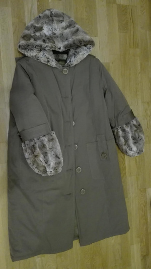 3. пальто на тинсулейте, сшито на заказ, с иск. мехом,надето один раз в театр. рр 48-50-52