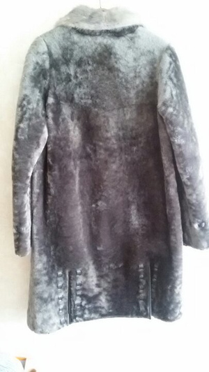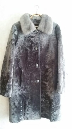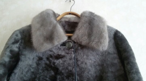 1. Шубка мутоновая, воротник из норки, отделка карманов, низа и бортов натуральная кожа.Очень элегантный серый цвет, силуэт не утяжеляет фигуру.