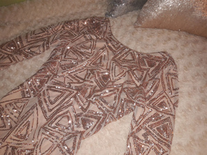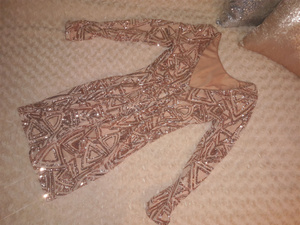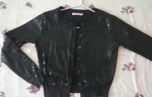 1) кофту: ткань с пайетками. Надета пару раз и постирана пару раз: ничего не отпало и не отпоролось. Сшито хорошо и качественно. Размер указан 40 (российский), рекомендую на 40-42. Цена: 499 руб.;
