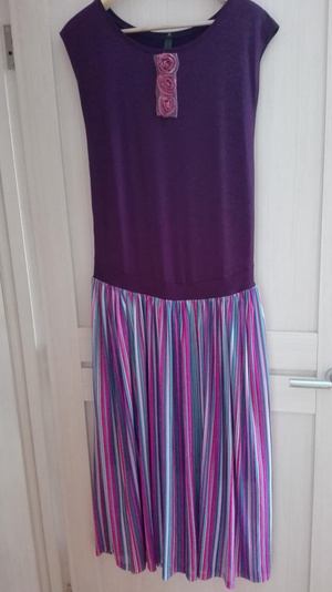 Продам платье копию известного бренда. Указан размер L - думаю, что подойдет на российский 44-й или неполный 46-й размеры. Ткань трикотажная. Спереди принт, рукава и спинка: вязка - лапша. Платье подарено, но с размером не угадали. Фото сделано на телефон, в реальности узор не яркий, но более четкий. Продаю за 899 руб.