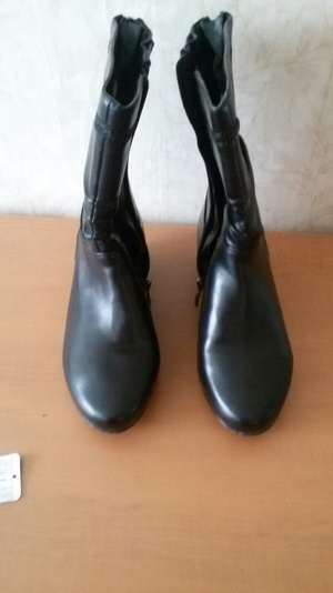 1) а-ля жокейские сапожки из натуральной темно-коричневой кожи (верх - светлее), 38 размер, премиум марка Марк О Поло (вверху лейблы фирмы)