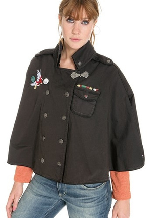 Кэйп (она же накидка) от Томми Хилфигера (приобреталась на мультибрендовом сайте Германии фронтлайншоп), выполненка с уклоном в военный китайский стиль, размер М (можно от 44 до 48) на подкладе, значок - можно отколоть.