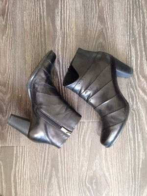Внутри натуральная кожа. Очень качественные. Мягкие, удобные, ортопедическая подошва. Высота каблука 5,5-6 см. 4000 рублей.