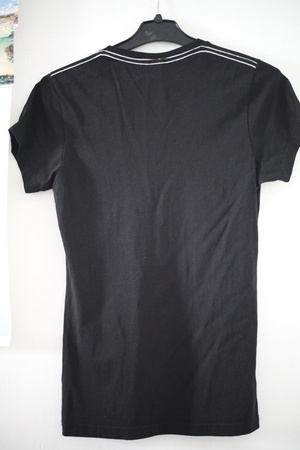 маркировка L - идеально на 46, на 48 с небольшой грудью. можно так же на 44 пробовать, если любите свободное. я не ожидала, что на спине будет такая роспись, мне поскромнее надо. вещь с этикеткой, на фото не видно: буквы сзади выложены металлическим бисером, есть запасные бусины.