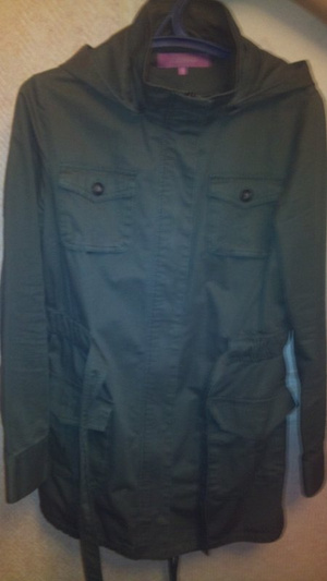 Классическая оливковая парка от SUZanna, с капюшоном, накладными карманами, поясом, "фрачным хвостиком" с завязкой хорошо на 44, неполный 46, приобретала на распродаже за 100 евро, отдам за 2300 р