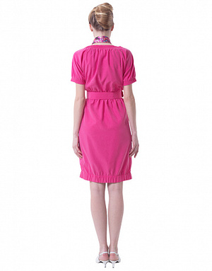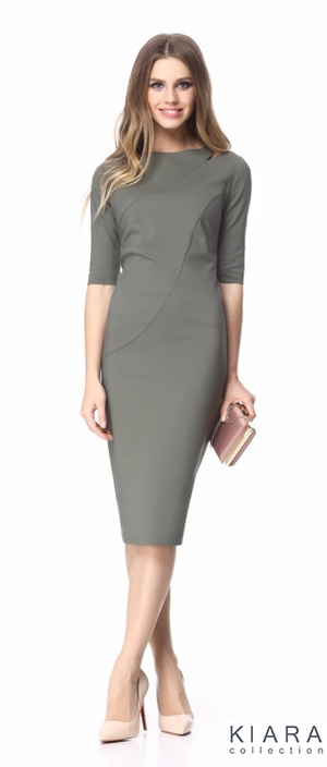 Новое элегантное платье женское, из хлопка, прилегающего силуэта, до линии колена, рукава-втачные, короткие. Перед с фигурными подрезами. Спинка украшена металлической тесьмой-молнией. Длина платья-106 Длина рукава-35 см.Состав:57% хлопок 39% нейлон 4% спандекс