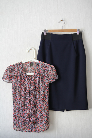 Юбка - размер 46-164. В реальности на 44-46, возможно даже на 42. Можно носить как обтягивающую, так и как слегка свободную. В талии на 70-75 см, за счет резинки садится плотно. 800 рублей. В магазине 2200. Блузка - размер 42 - 164. В реальности на 42-44. 500 рублей. В магазине примерно 2000.