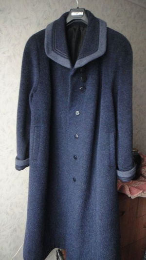 Натуральное, теплое, осеннее пальто. Одевалось несколько раз. Глубокий синий цвет. В жизни выглядит гораздо лучше!