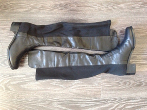1. Ботфорты Tj collection. Черные, 37 размер. Новые, не подходят по стилю. Высокие, прикрывают колено. Натуральная кожа, мягкая. Задняя часть типа тканная резинка. 4000 рублей.