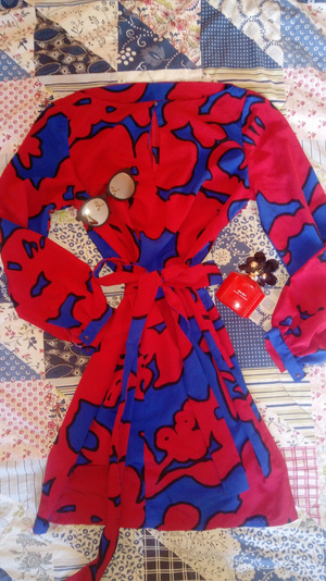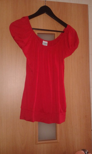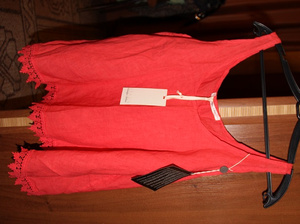 3) Платье НОВОЕ красное, но без этикеток. Размер XL - скорее 48 русский (ОГ примерно 100-105, ОТ 84-88, ОБ 100-110, плечо 14, рукав -50, длина 108 (короткая часть - 81) - 600 руб. Ткань неплотная (слегка просвечивает). Без пояса