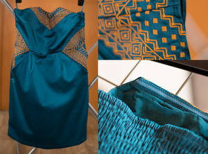 Покупала его 8 лет назад в интеренет-магазине, но так и не было повода выгулять. Поэтому его так никто и не носил. Атласное, на хлопковом подкладке, талия завышена, на спине-резинка, на лифе-силиконовые полоски. Качество отличное. НО! Когда гладила для фото от времени сломалась собачка, то есть..нужно переставить замок.