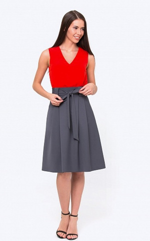 Описание производителя: "Расклешенная юбка с мягкими складками. Ткань гладкая, струящаяся. На поясе есть крупные шлевки, в комплект входит аккуратный тканевый пояс. По бокам удобные кармашки. Очень комфортная модель, хорошо подойдет для повседневной носки.