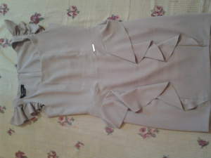 3) Платье НОВОЕ, но без этикеток. Размер XL - скорее 48 русский (ОГ примерно 100-105, ОТ 84-88, ОБ 100-110, плечо 14, рукав -50, длина 108 (короткая часть - 81) - 600 руб. Ткань неплотная (слегка просвечивает). Без пояса