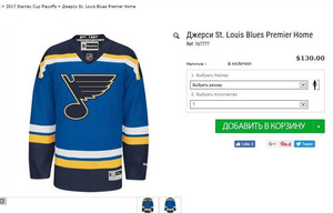 Размер 48 (можно и на 50) Цена 5000 рублей (на сайте без учета доставки 130$). Тем более "Сент-Луис Блюз" сейчас борется за кубок Стэнли!