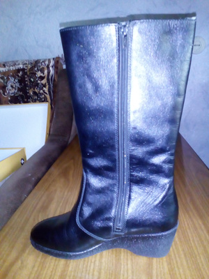 Новые зимние сапоги, размер 40, Югославия, натуральная кожа, натуральная шерсть, ширина голяшки 39, ширина по взъему 36, подойдут на широкую ножку, танкетка 4 см, очень удобные.