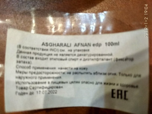 2. Арабские духи /т вода Asgharali Afnan 100 мл , ровно 1 пшик, в большой красивой коробчке Покупались за 4500 с доставкой в Новосибирск. 4000 т