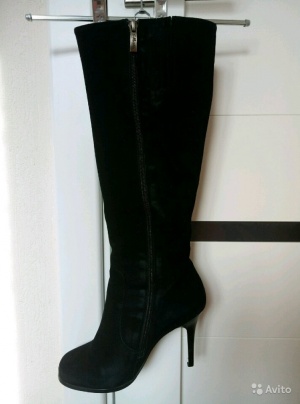 Продам сапоги из натуральной замши, еврозима. Надевала несколько раз "на выход", состояние хорошее. Набойки под замену, каблуки можно подкрасить. Стельки вынимаются, молнии рабочие, все стразы на месте, серьезных потертостей замши нет, если освежить спрей-краской, то будут выглядеть как новые. Высота каблука 10см.