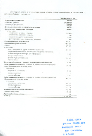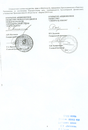 К примеру, передаточный акт, подписанный Сибирьтелеком и Ростелекомом и утвержденный собранием акционеров (акт на 4-х листах вместе с титульным), не содержит никакой информации по должникам Сибирьтелекома.