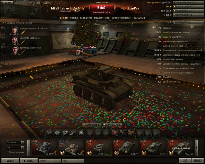 PD. Уважаемые игроки, до Нового года осталось уже совсем немного времени, а значит — пришла пора дарить подарки. Уникальный легкий премиумный танк второго уровня Mk VII Tetrarch готов прибыть в ваши ангары.